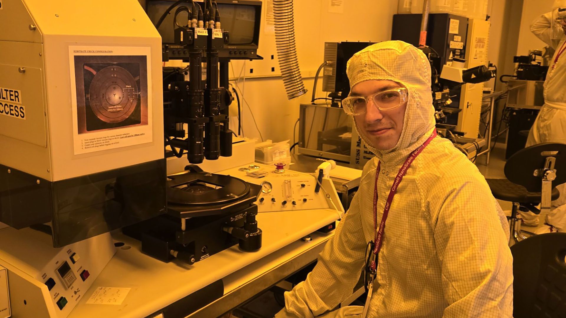 VanHubert spent the summer helping the staff at CNF within the cleanroom. “For one hour a day, I restock the cleanroom, refill the chemicals in the machines, and generally tidy the photolithography spaces,” he said. “For the rest of the day, I am free to learn and use the equipment. I receive training on many of the tools used in nanofabrication, and I've been slowly learning the CMOS process used to make modern day computer processors, memory, etc.”